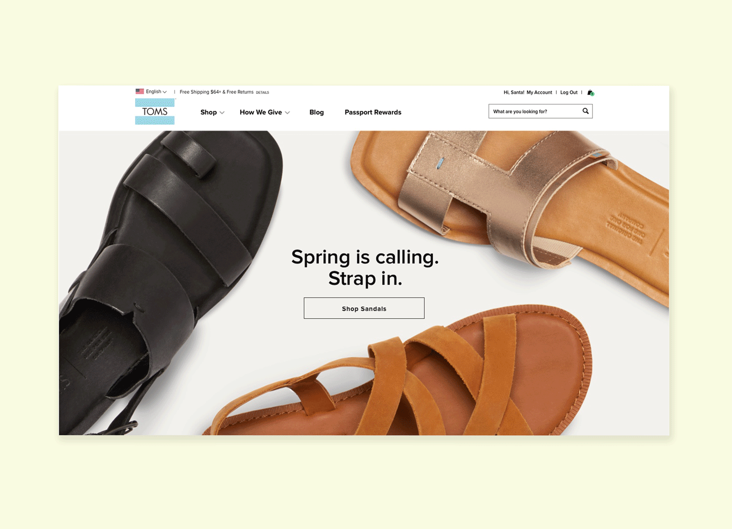 TOMS Digital Marketing assets including web layouts, icons and email campaigns. TOMS went through a rebrand in 2021— I led the design efforts to refresh all email templates for product, social impact, welcome, customer retention onboarding emails.